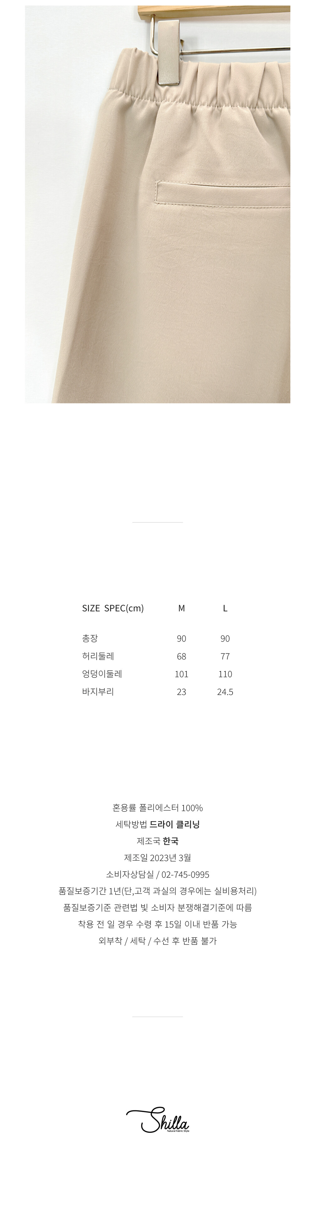 허리부분이 밴딩처리되어 편하게 착용하실 수 있습니다.