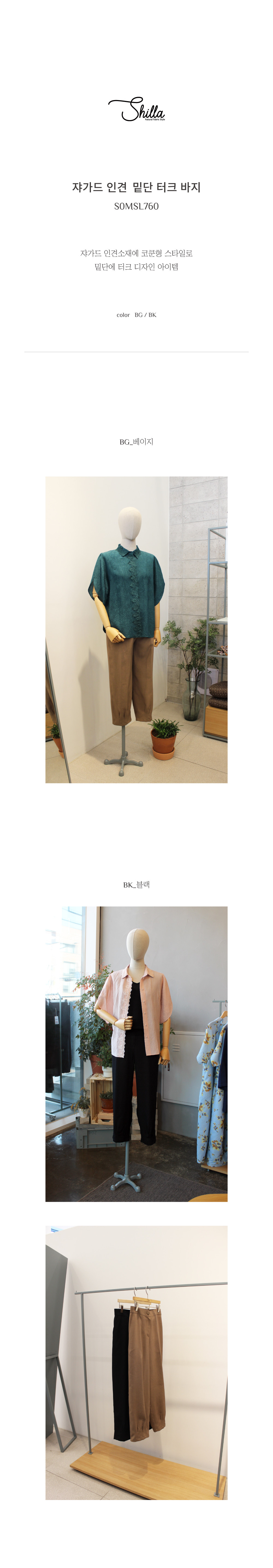 쟈가드 인견 밑단 터크 바지_S0MSL760